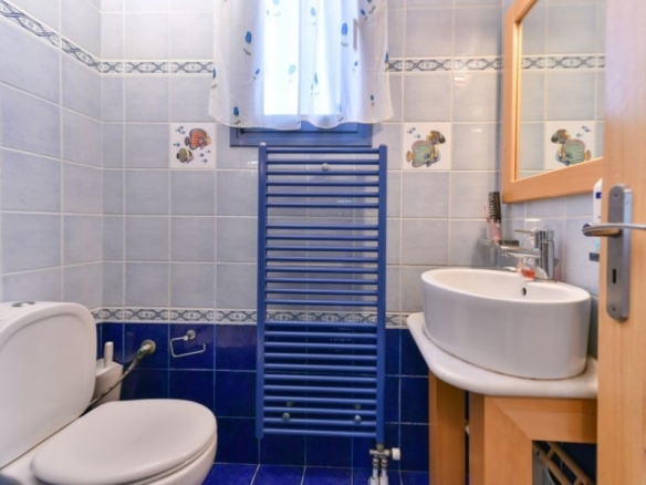 On the first floor we find the master bedroom which looks directly to the sea with built-in wardrobes, many storage spaces and access to the balcony of this 1st floor. There also 2 more bedrooms on the same floor with storage spaces in each, very bright and a large ensuite bathroom with space to fit a washing machine.